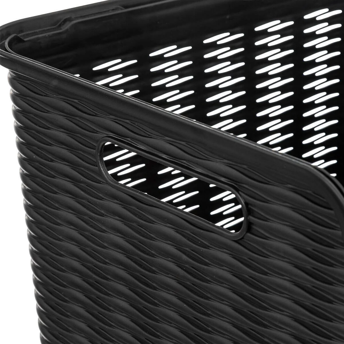 Der Aufbewahrungskorb mit Griffen bietet eine kompakte Lösung zur Ordnung in Wohnräumen. Sein glattes, modernes Erscheinungsbild in Schwarz ergänzt unterschiedliche Einrichtungsstile, während das Volumen ausreichend Stauraum für Haushaltsgegenstände bereitstellt.