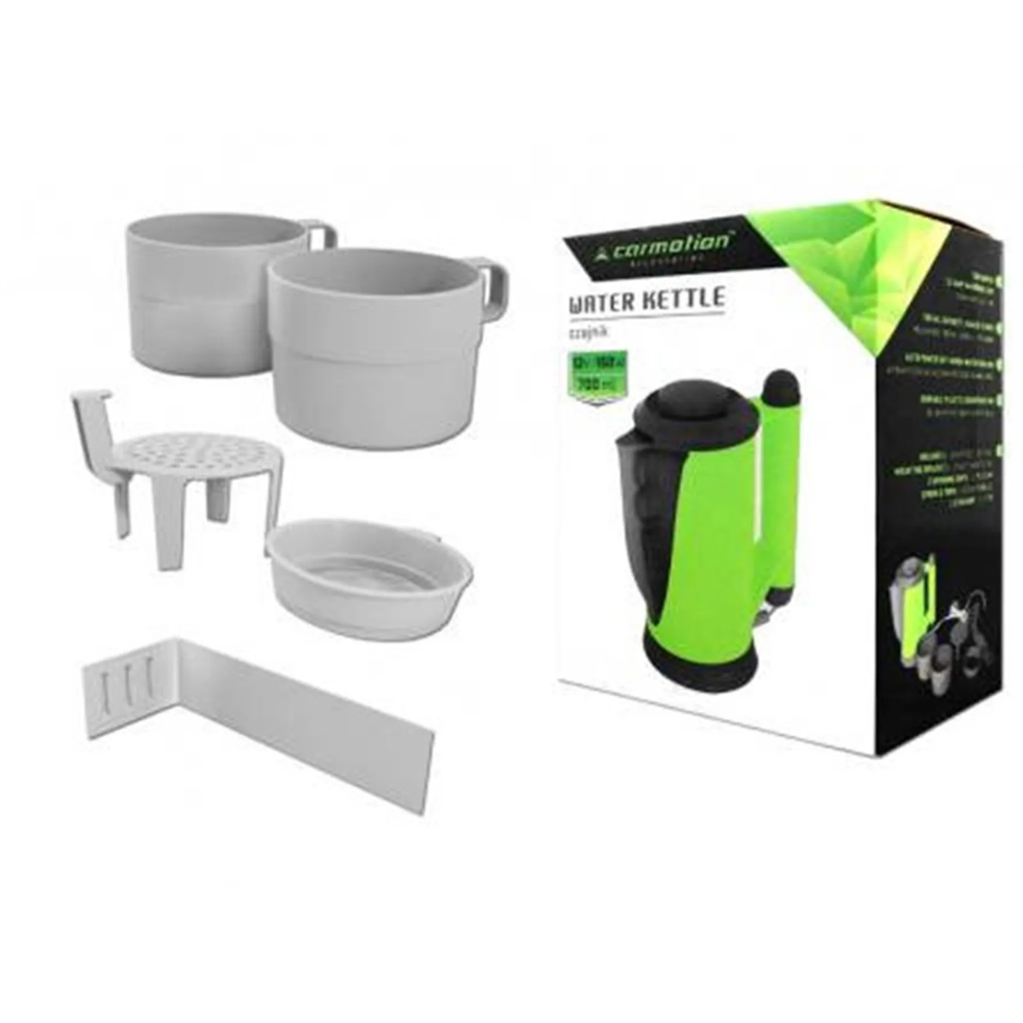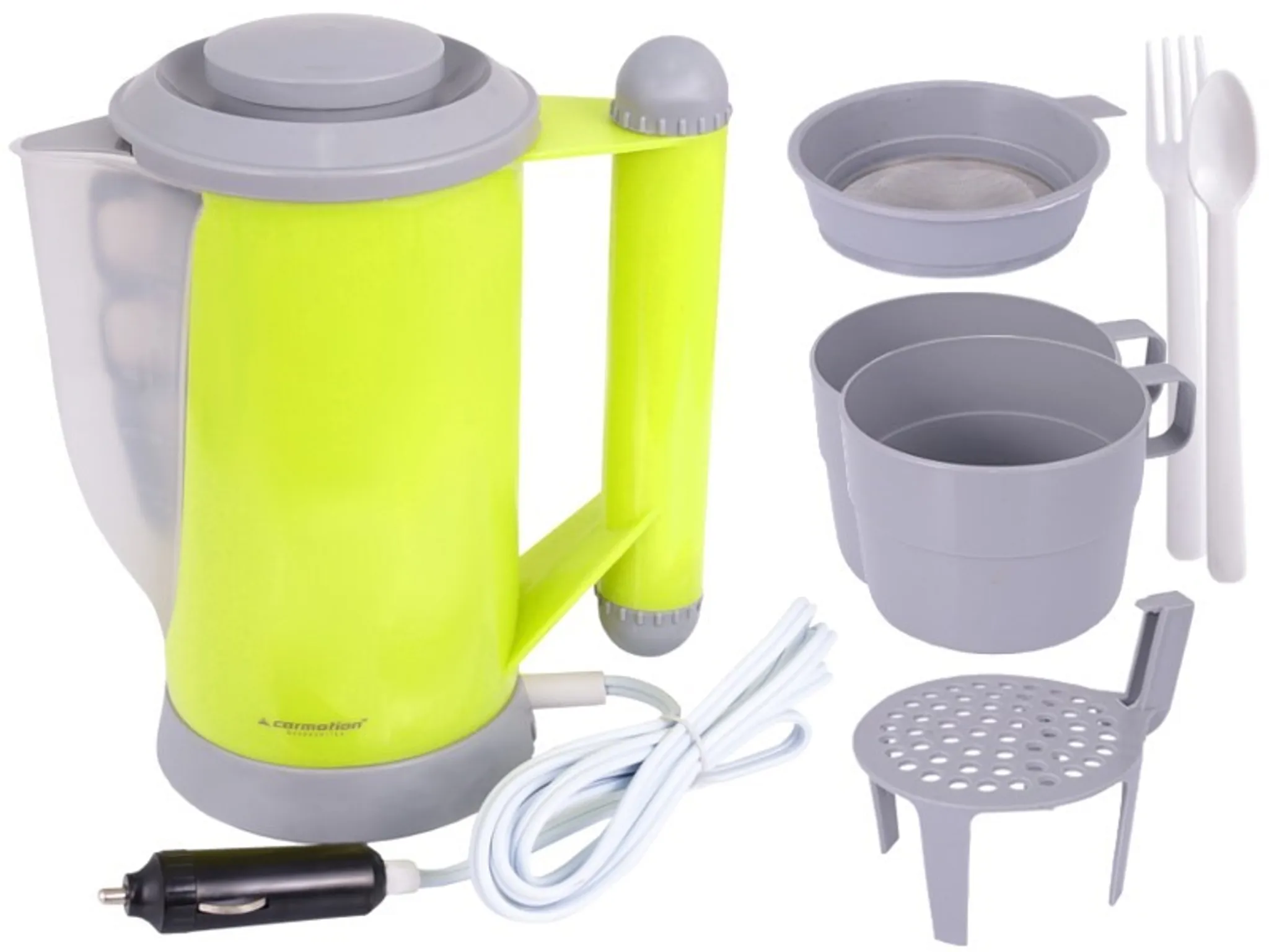 Autowasserkocher-Set für Wohnmobil – 0,7L mit Tassen, Besteck und Sieb
