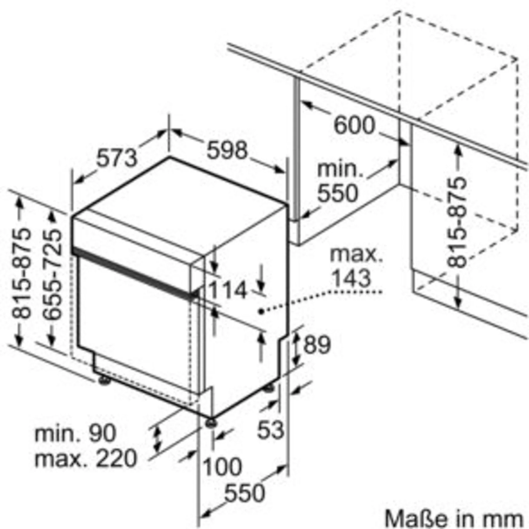 | Nischengröße (min.) | 600 x 815 x 550 mm (B/H/T) |