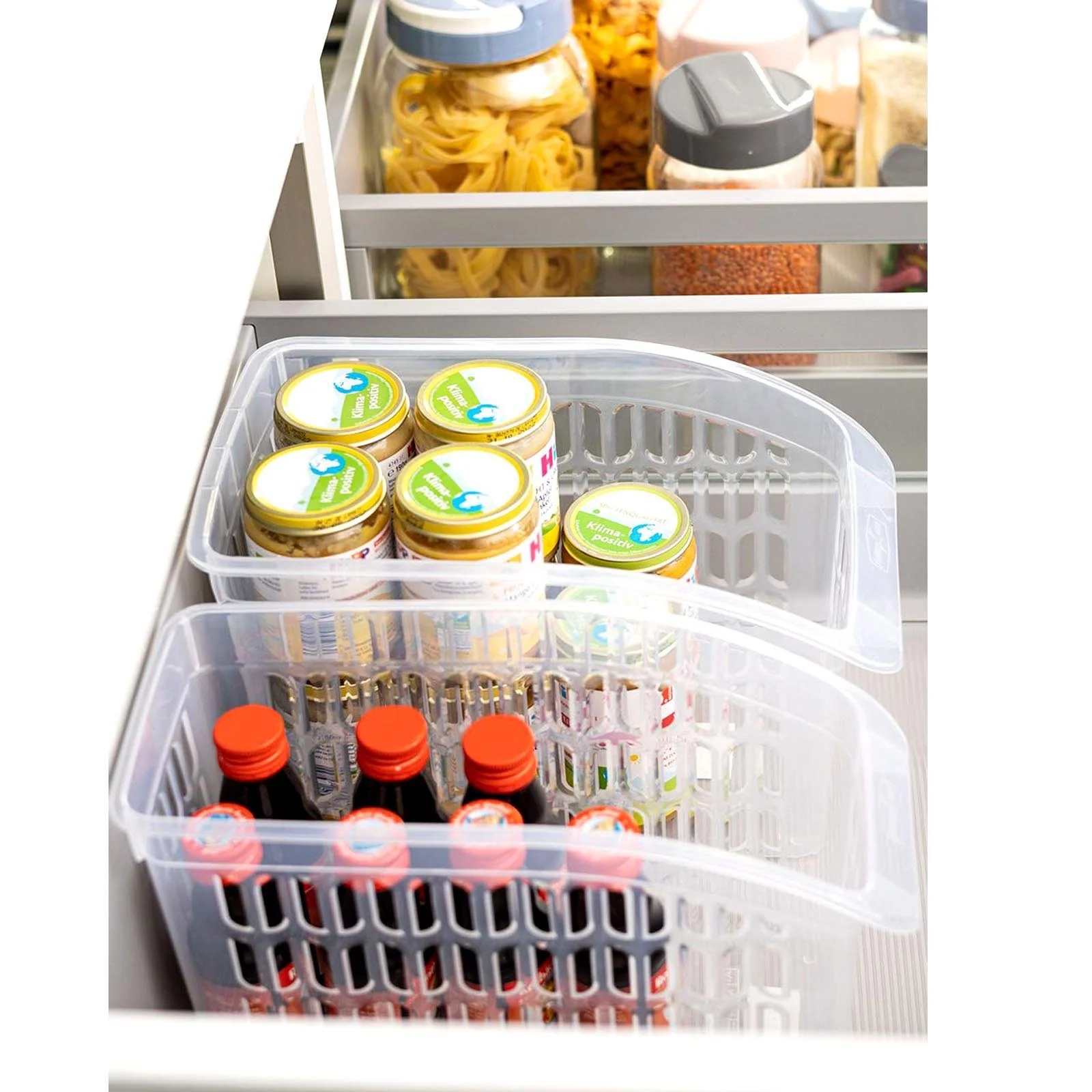 Das 8er Set Aufbewahrungskorb Transparent schafft in Regalen und Schränken klare Sichtverhältnisse und mehr Ordnung: Dank des durchsichtigen Designs erkennen Sie den Inhalt sofort, ohne die Box öffnen zu müssen. Die Körbe eignen sich für die systematische Aufbewahrung von Lebensmitteln, Reinigungsmitteln und weiteren Haushaltsgegenständen.