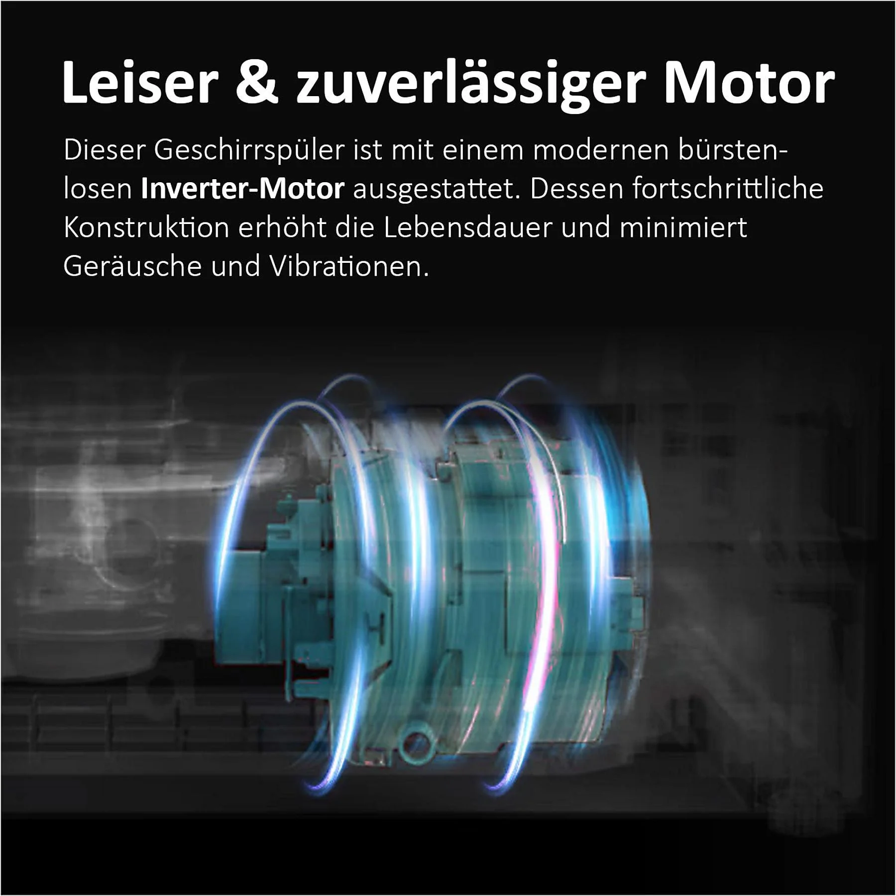- Bürstenloser Inverter-Motor – entwickelt auf geringe Vibrationen und leisen Betrieb ausgelegt.
