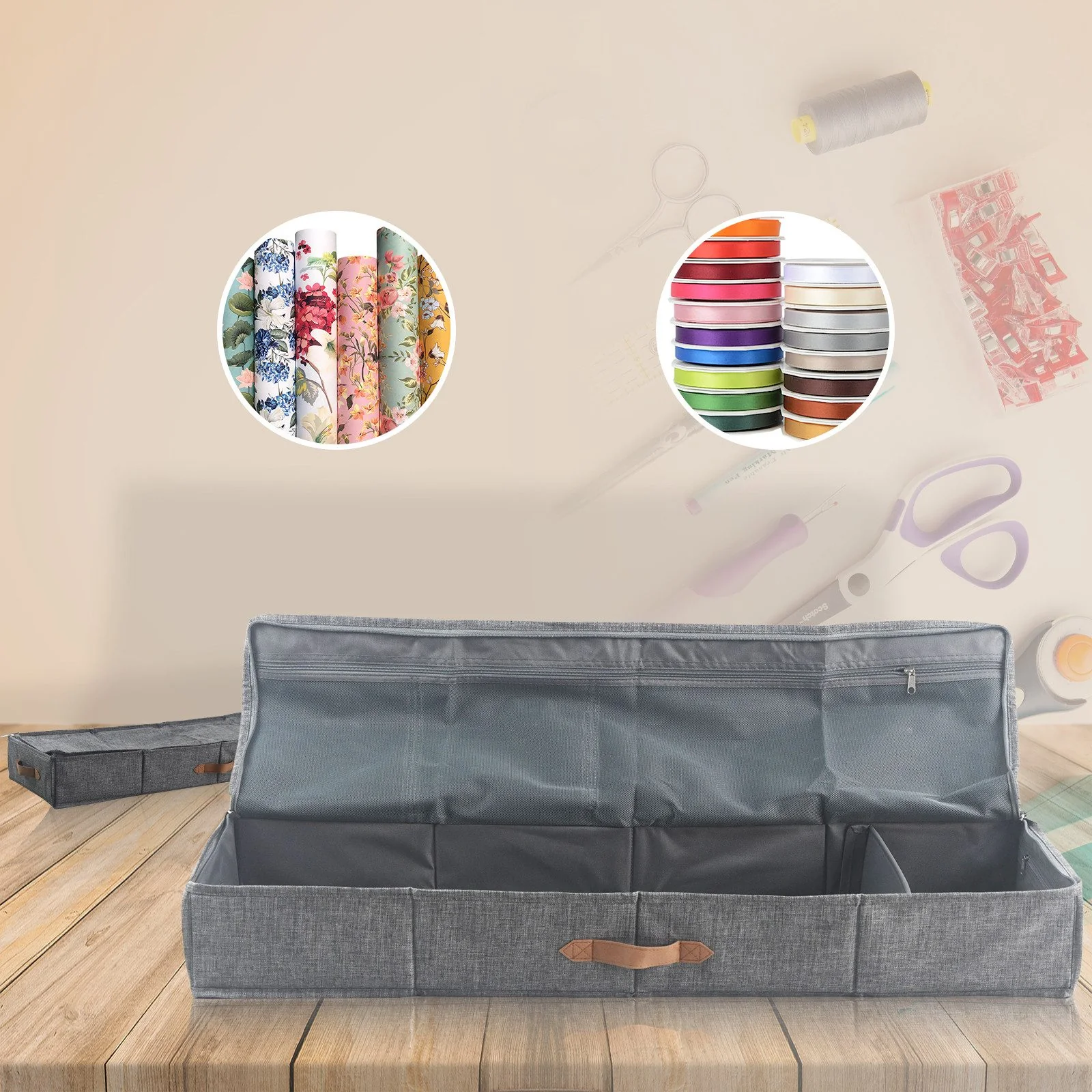 - Reißverschlussdeckel: Schützt Textilien vor Staub, Schmutz und Feuchtigkeit und erleichtert das Öffnen.