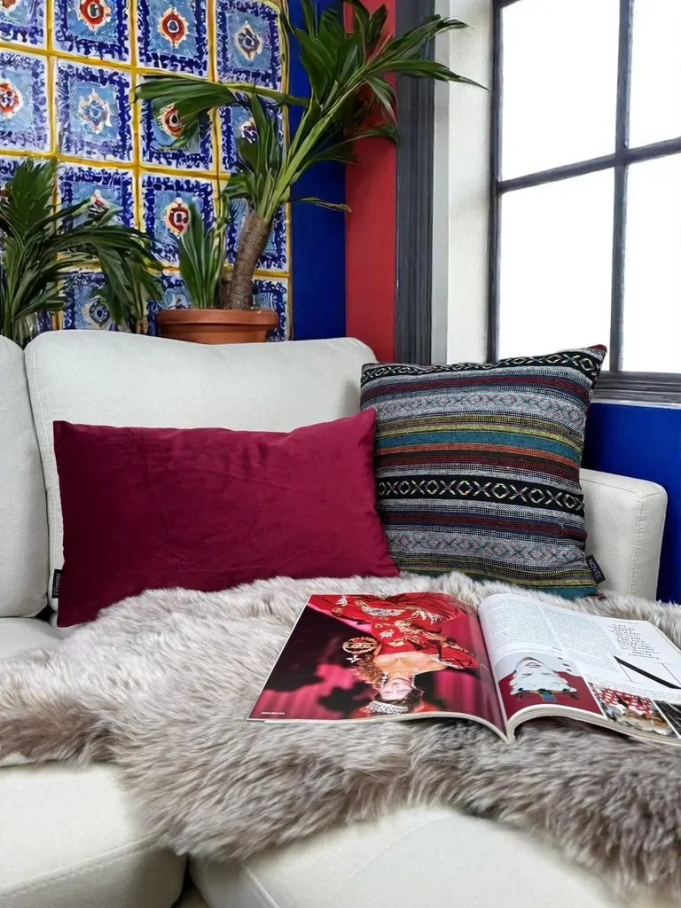 Das Zierkissen Mexican bringt durch seine farbenfrohe Optik eine Urlaubsatmosphäre ins Wohnambiente und lässt sich mit anderen Dekokissen der Serie kombinieren. Es eignet sich für warme Einrichtungsstile und setzt gestalterische Akzente auf Sofa oder Sessel.