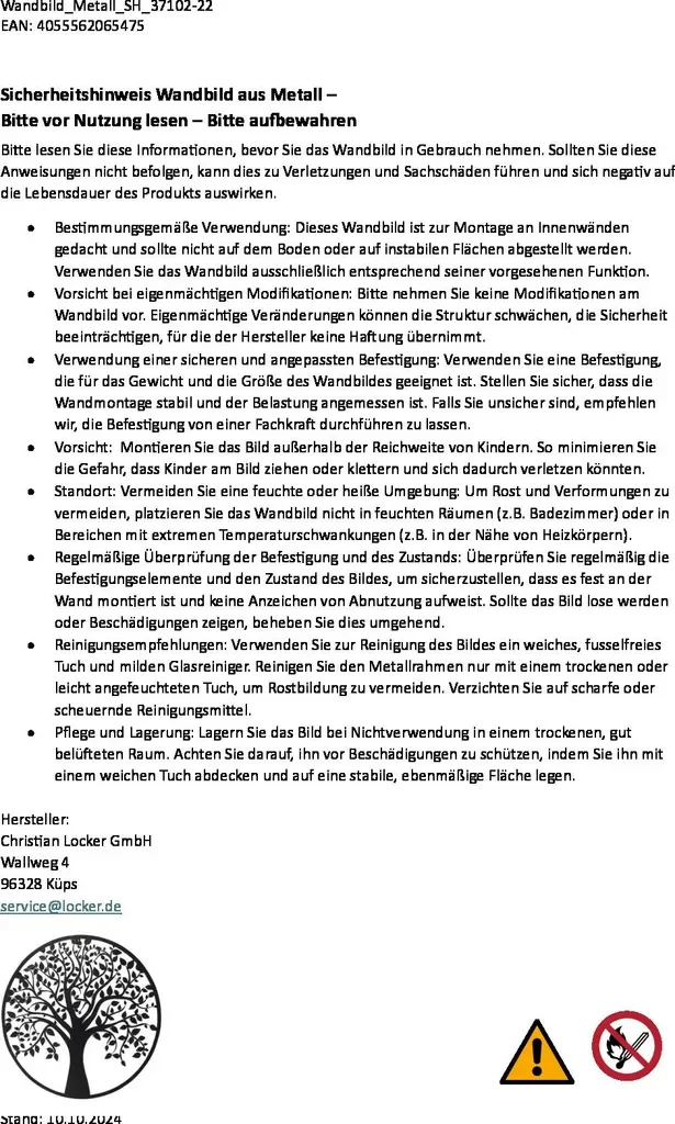 - Hersteller Locker: die Nennung des Herstellers gibt eine klare Zuordnung zur Marke und Herkunft des Produkts.