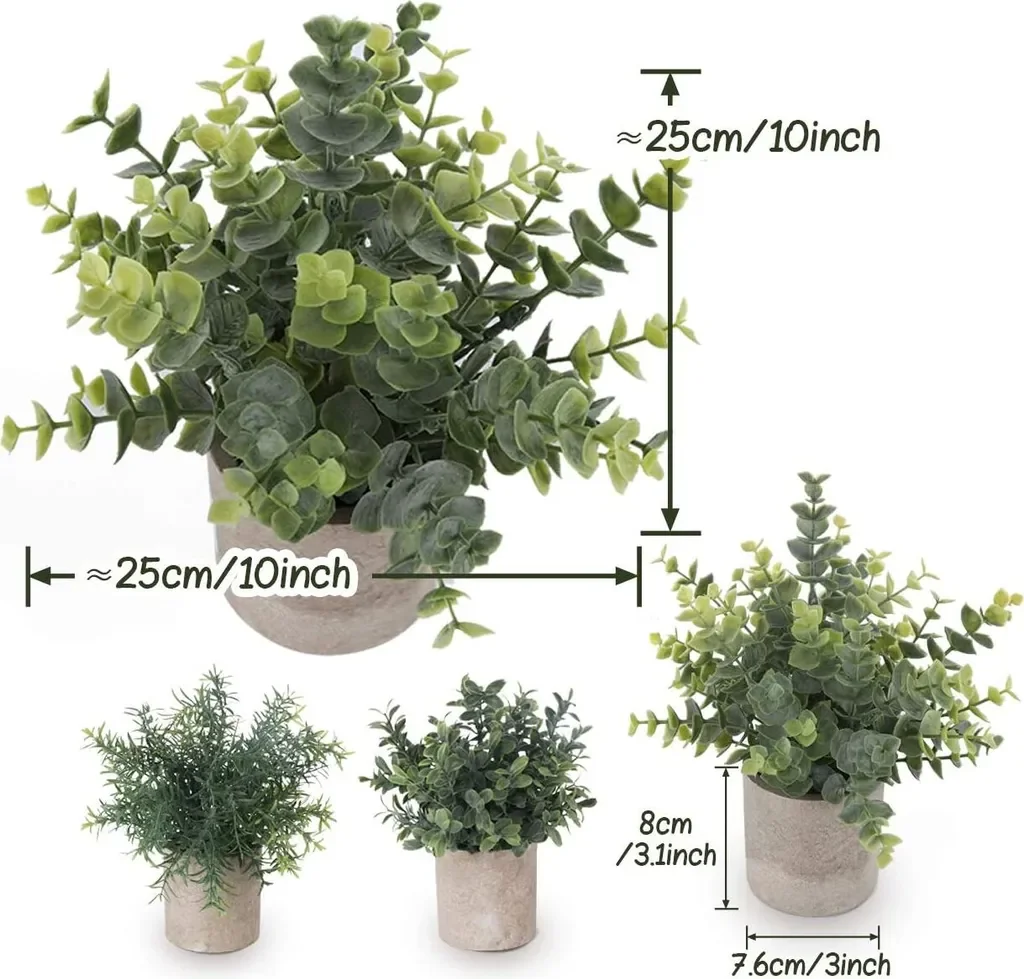 Kunstpflanzen 3er Set Eukalyptus Rosmarin Babysbreath mit Töpfen
