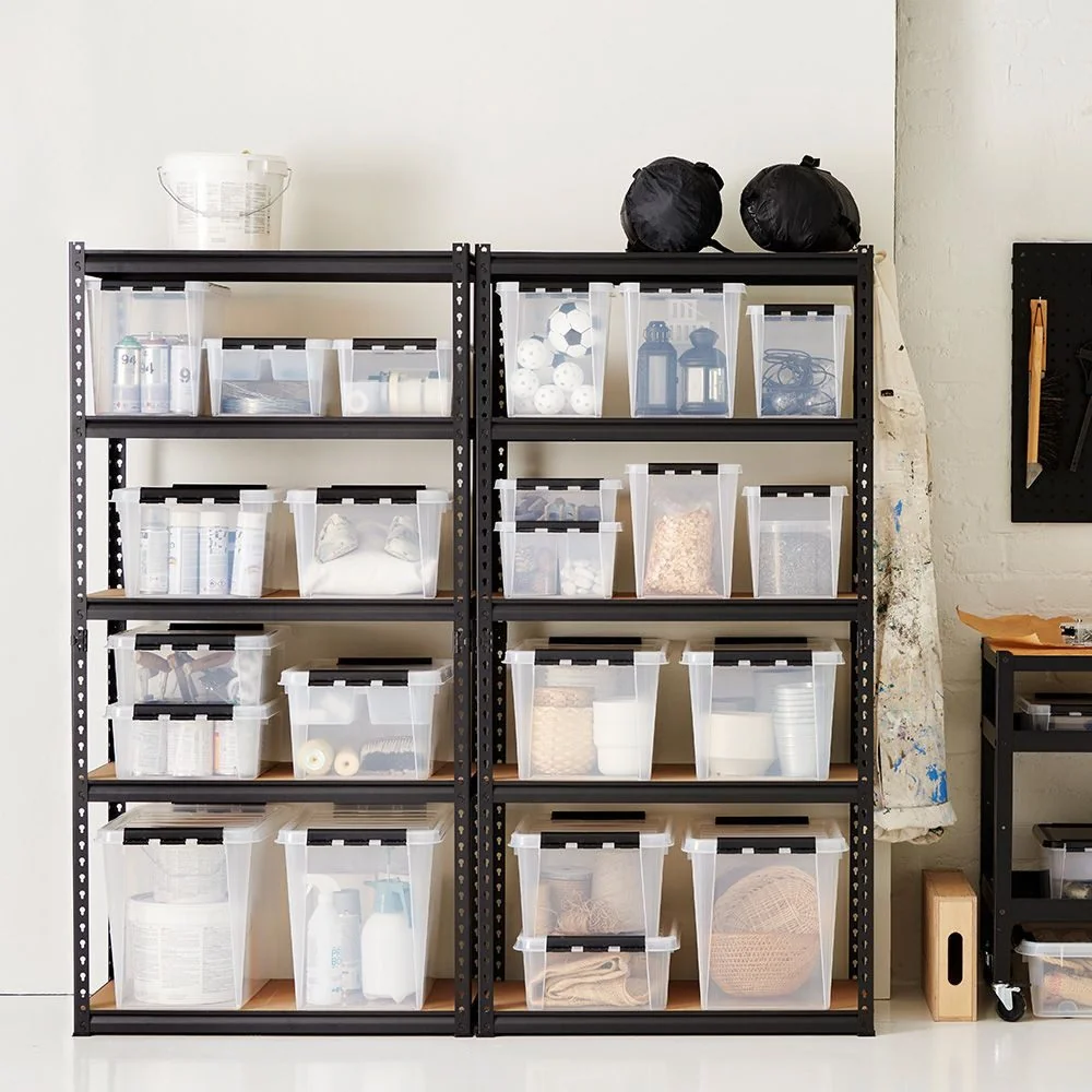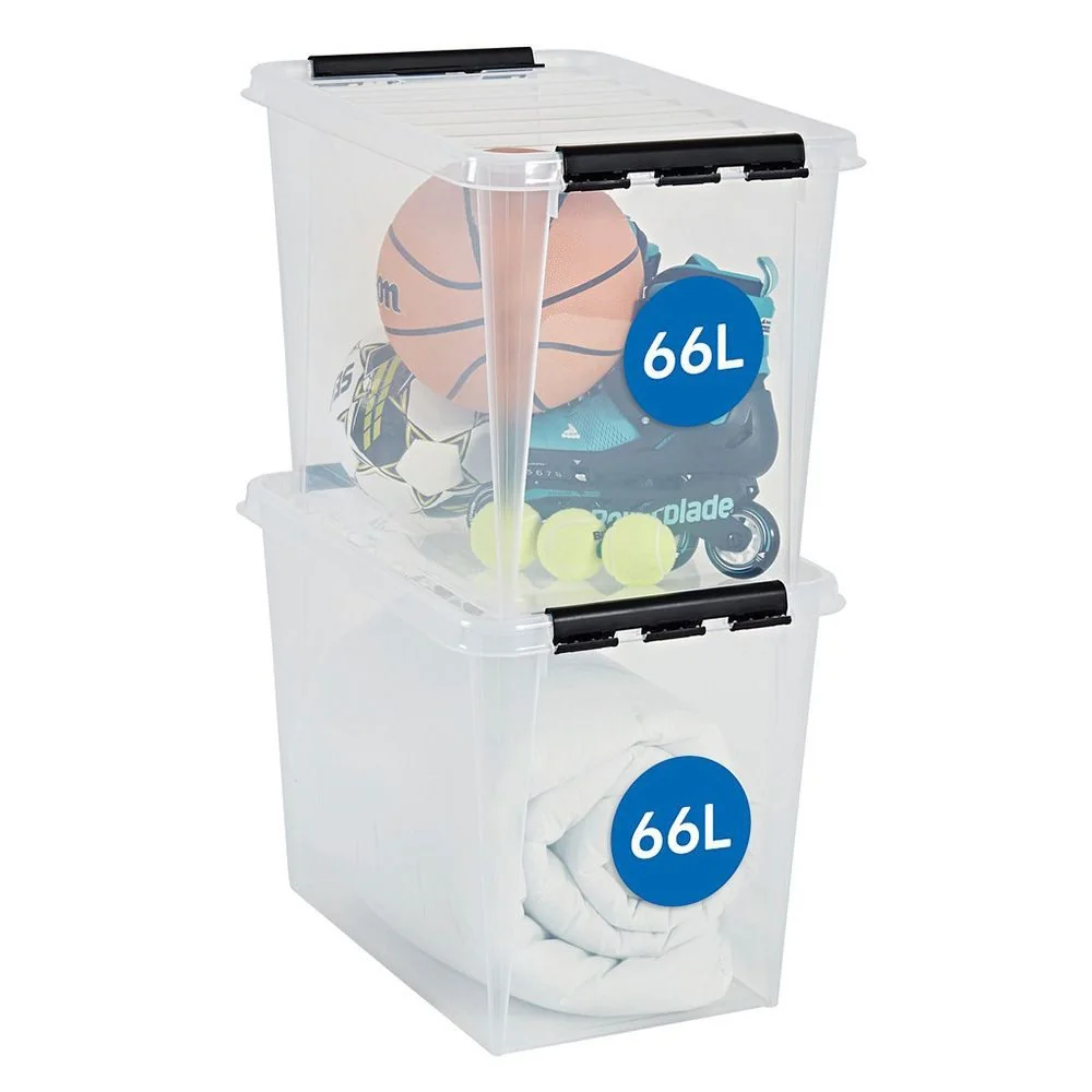 Die SmartStore Classic 66 L ist eine hohe, geräumige Aufbewahrungsbox, die sich für sperrige Gegenstände wie Decken, Kissen, saisonale Kleidung und Sportausrüstung eignet. Durch das transparente Material behalten Sie den Überblick über den Inhalt, während stabile Verschlussclips den Deckel sicher fixieren.