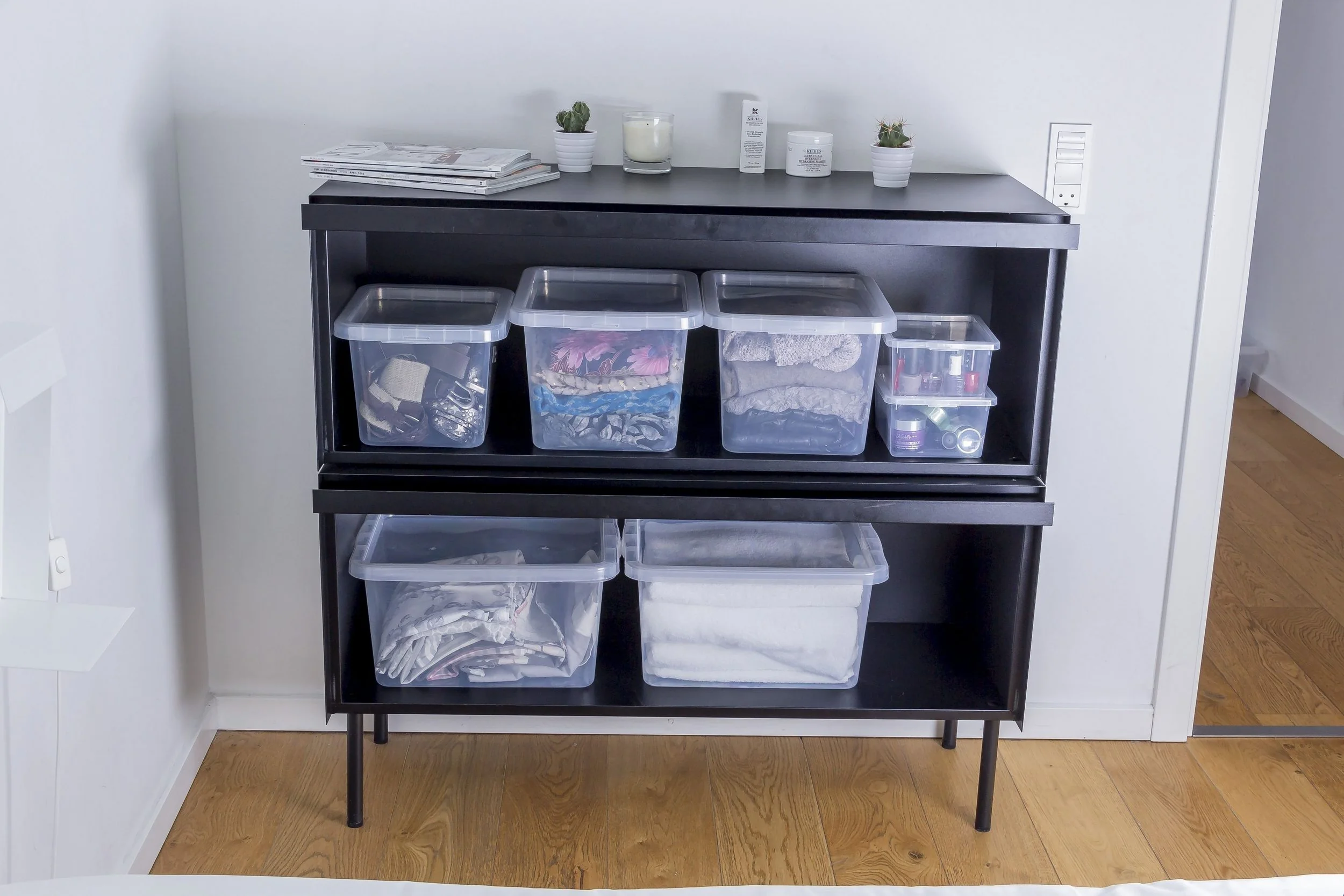- Transparentes Material: Sichtbarer Inhalt erleichtert das Auffinden von Gegenständen ohne Öffnen der Box.