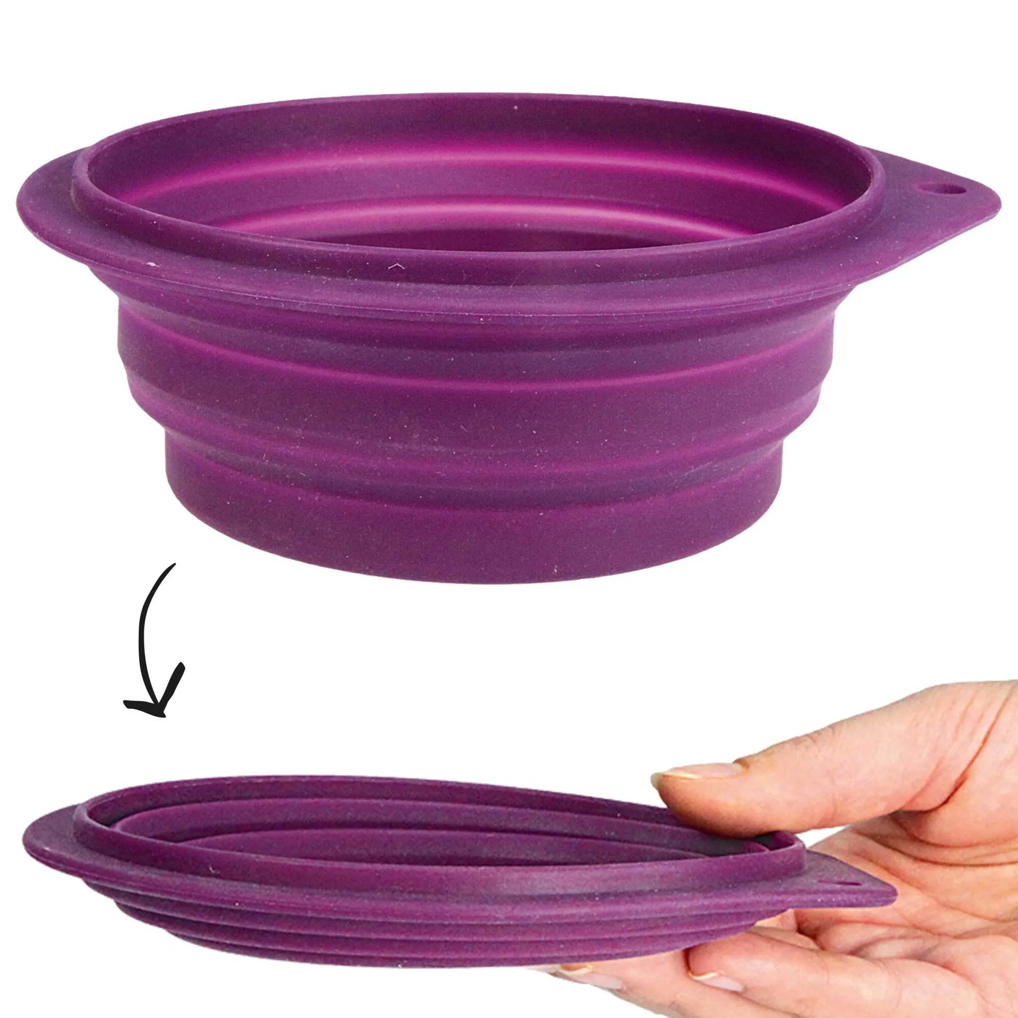 Einfach zusammenklappen, transportieren und bei Bedarf wieder aufstellen. Spülmaschinen- und mikrowellengeeignet, ideal für Futter oder Wasser unterwegs. Lieferung erfolgt in verschiedenen Farben, nach Verfügbarkeit.