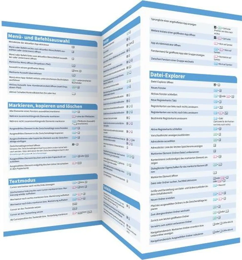 Diese Zusammenstellung nützlicher Windows 11 Tastenkombinationen dient als kompakte Gedächtnishilfe. Sie unterstützt sowohl beim sicheren Beherrschen von Windows 11 als auch beim schnellen Navigieren durch Microsoft-Edge-Tabs oder bei der Textbearbeitung. Die Faltkarte bietet auf sechs farbigen Seiten einen strukturierten Überblick und ist dank abwischbarer Oberfläche für den täglichen Einsatz am Arbeitsplatz geeignet.