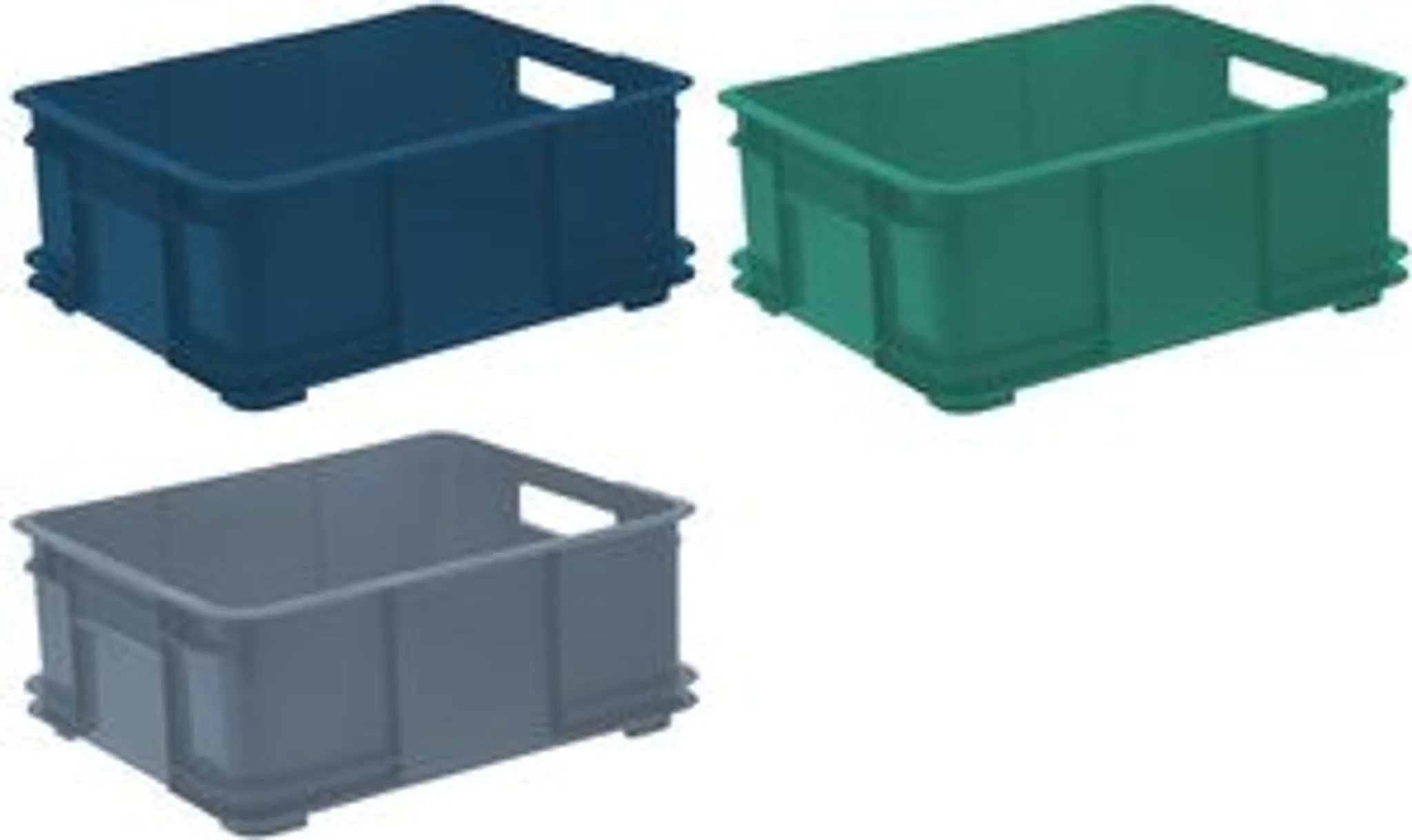 Aus 100 % Recycling-Kunststoff • Robust • Stapelbar